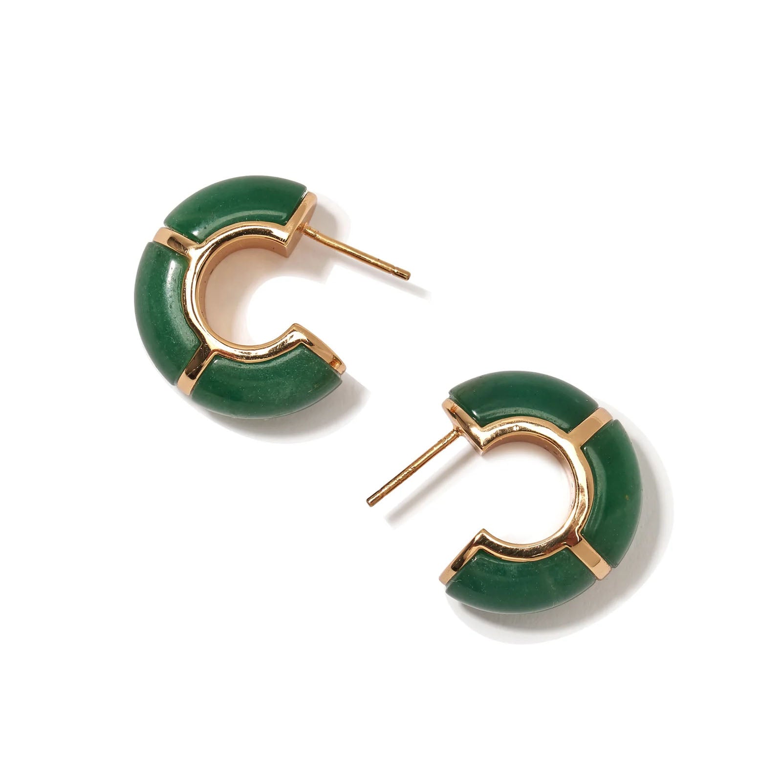 These hoops are Lizzie Fortunado's freshest new silhouette in gold-plated brass with African jade stone inlay. Inspiration for them was taken from the traditional glazed Zellige tiles handcrafted in Morocco.