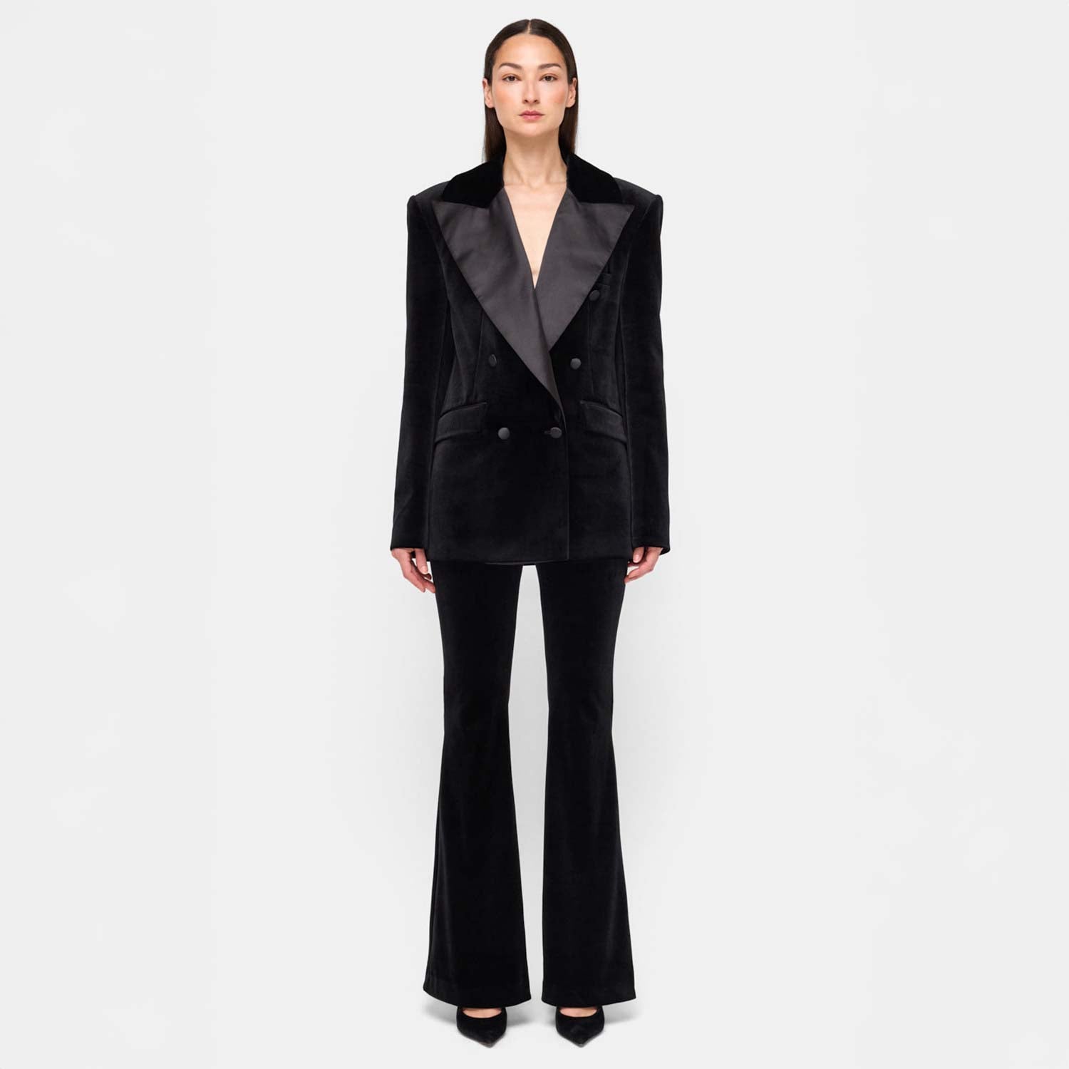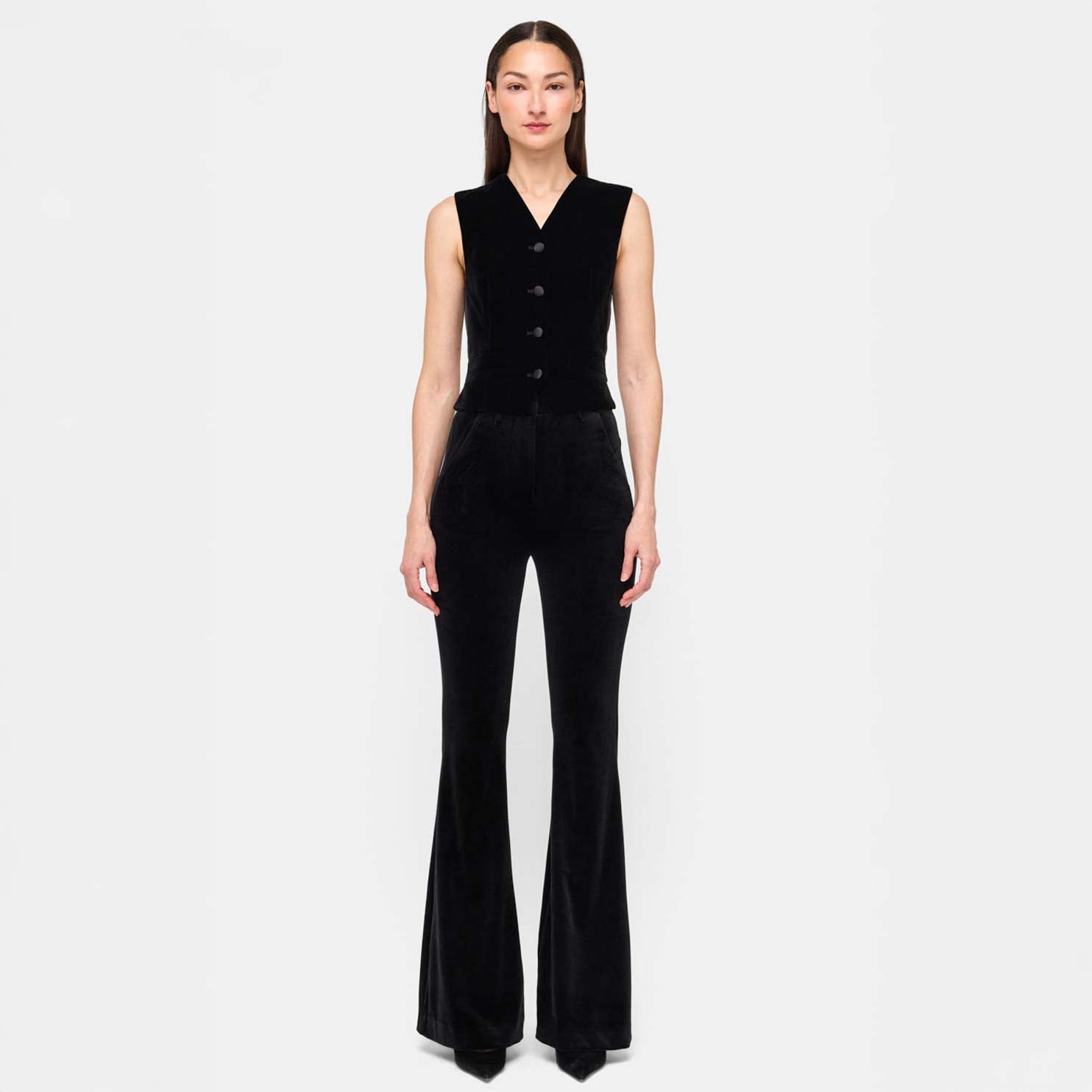 Tailored with modern ease, the Vanessa Pants are cut from plush velvet for a sleek, elongating fit. Featuring a high-rise waist, side pockets, and a subtle flare leg, they’re an elevated essential that transitions effortlessly from day to night.