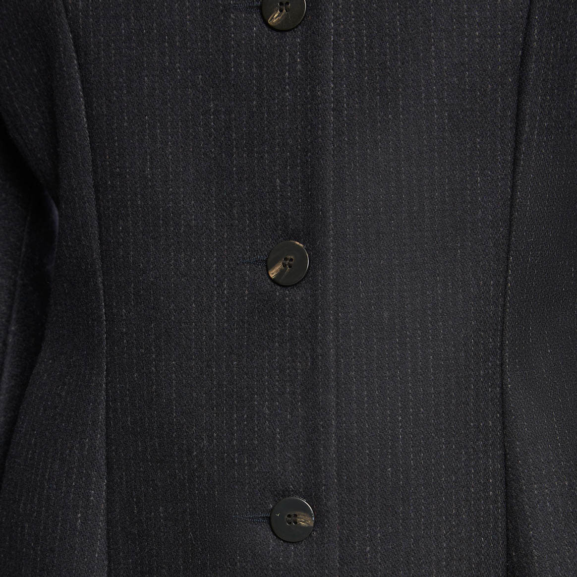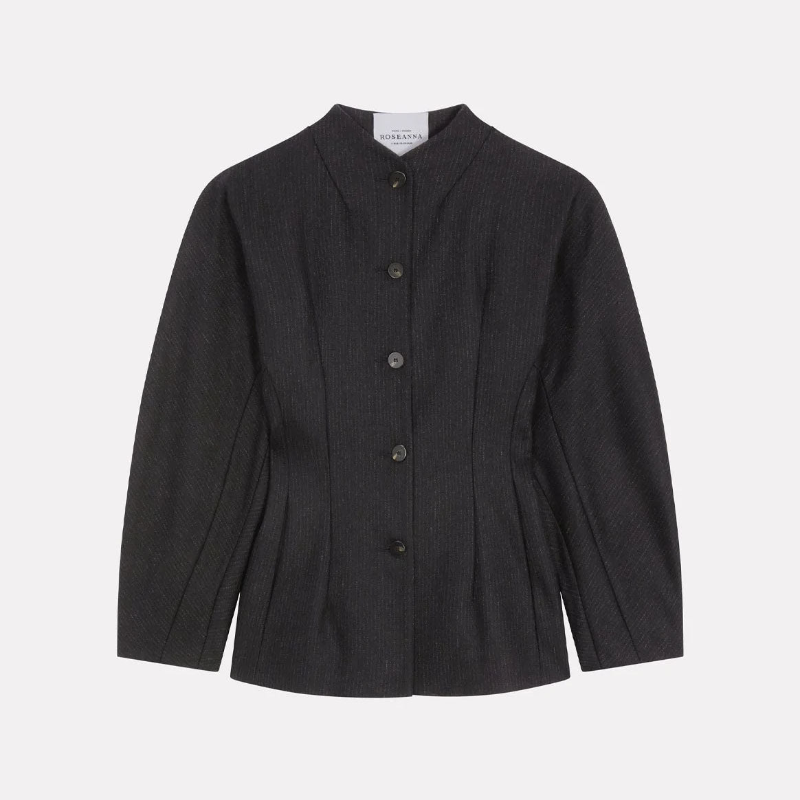 The Charlie Jacket is made with Italian wool fabric that features fine tone-on-tone stripes, balloon sleeves, and button closures. Its tailored structure gives the silhouette elegance and modernity.