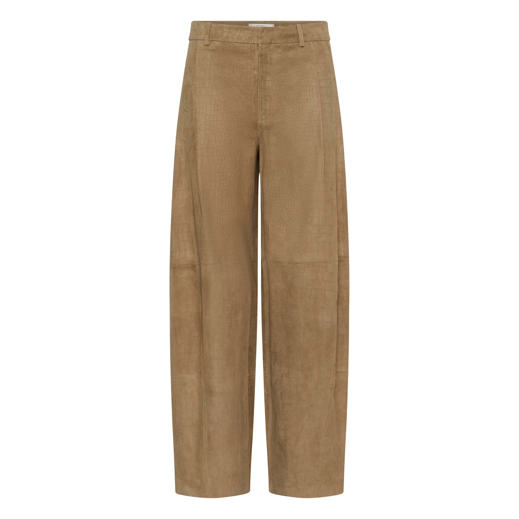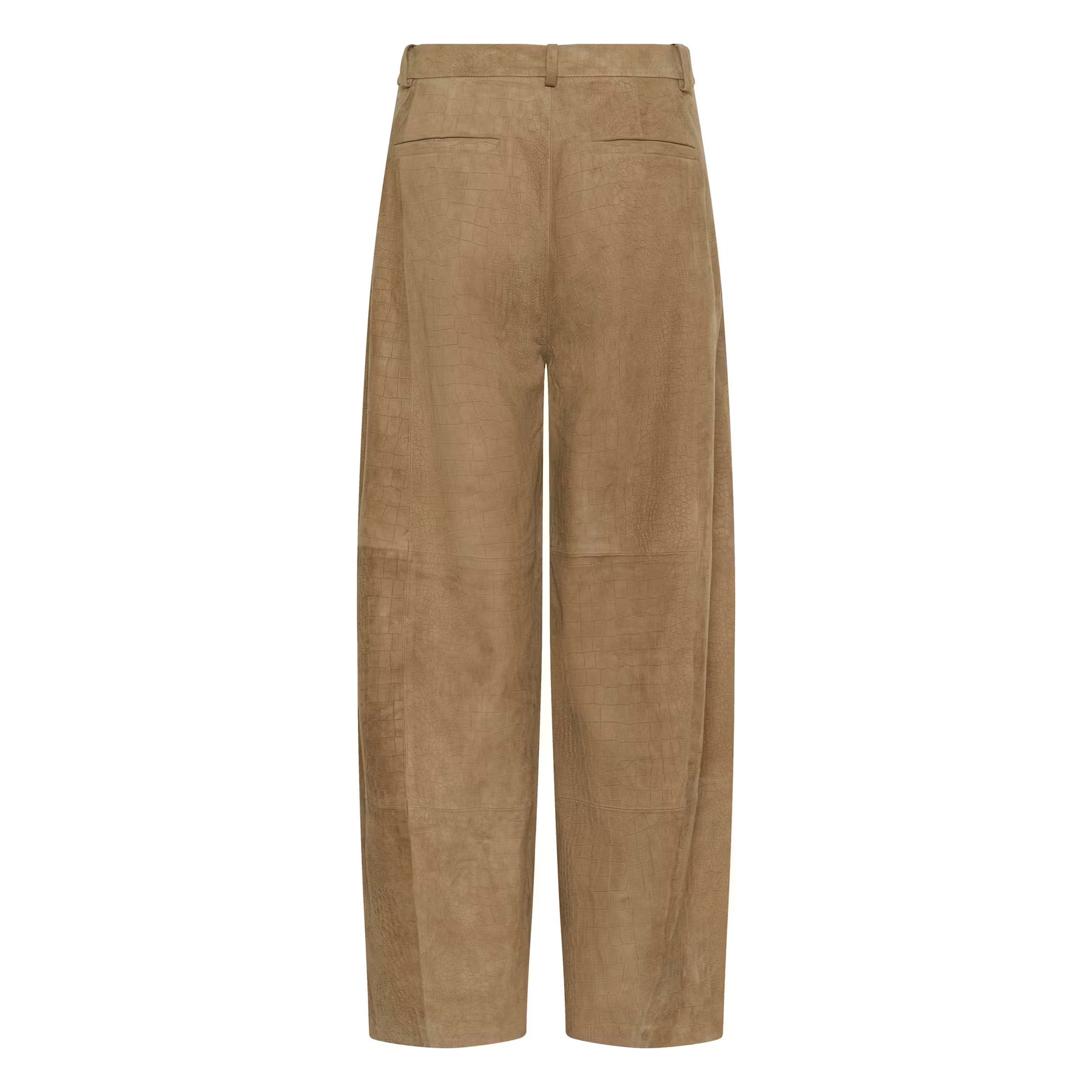 The Estelle Pants combine a chic high-waisted silhouette with structured tailoring and subtle embossed texture. Featuring belt loops and a front zip closure, this straight-leg style transitions effortlessly from work to weekend. Note: these trousers run large—size down one size for the ideal fit.