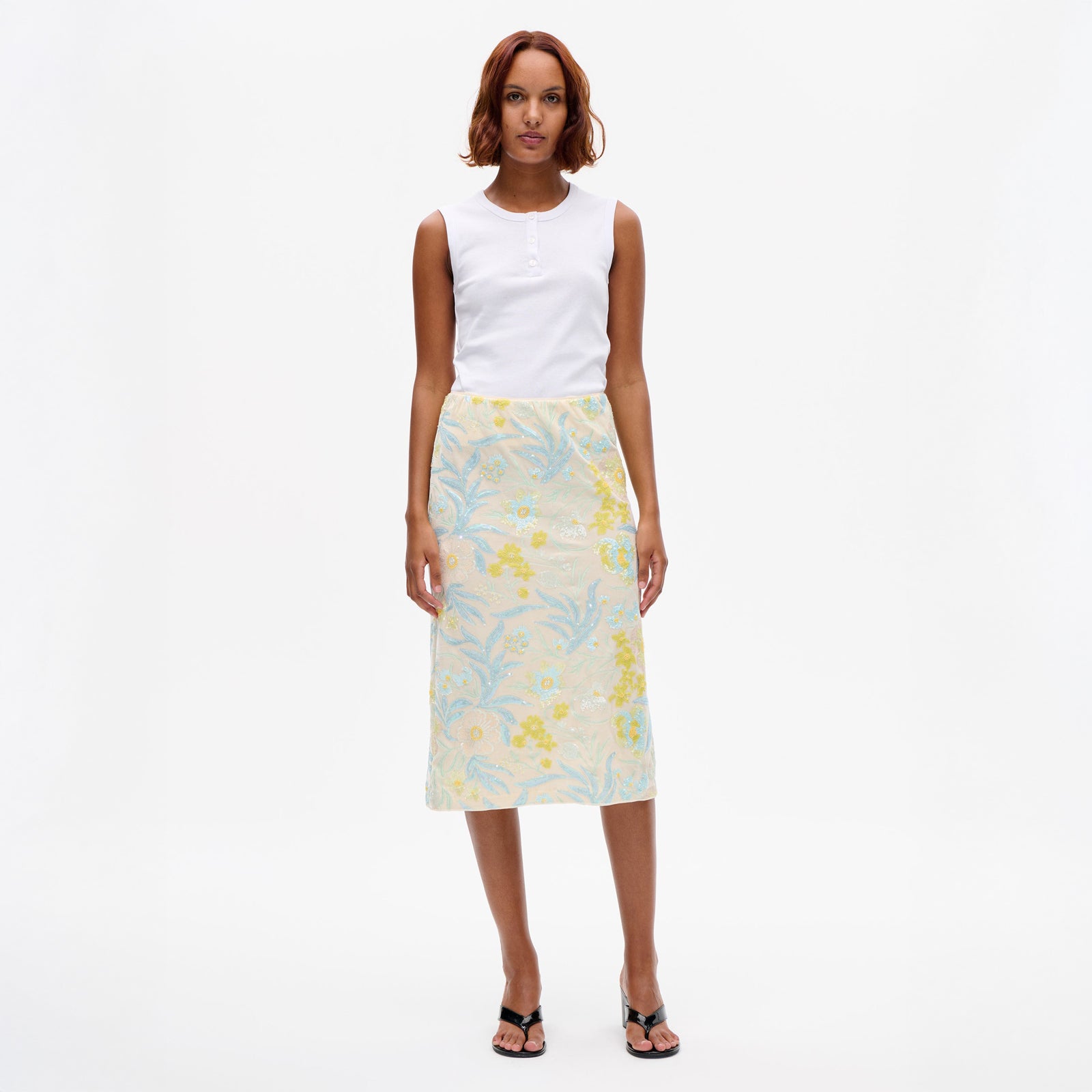 The Jony Top is a classic tank top with three buttons at the front and made in a soft, finely ribbed organic cotton jersey.
